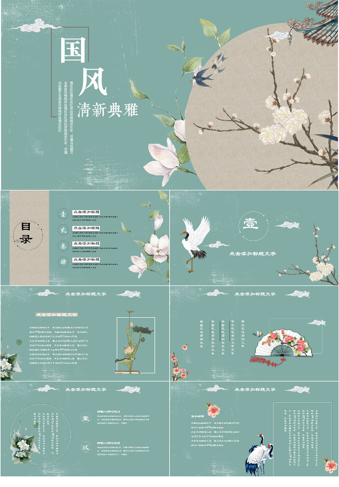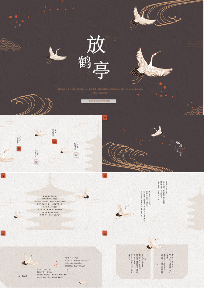 简约典雅仙鹤中国风PPT模板