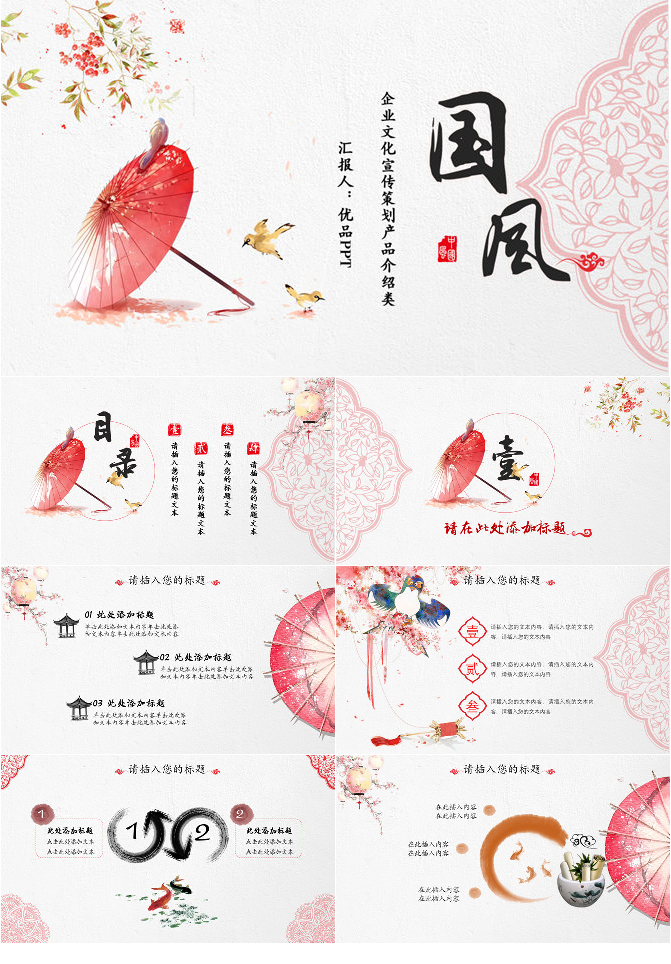 红伞创意现代中式PPT模板