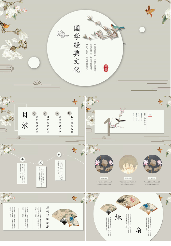 素雅古典花鸟中国风PPT模板