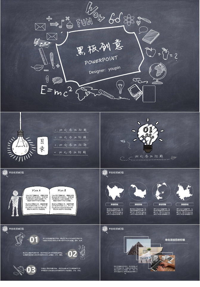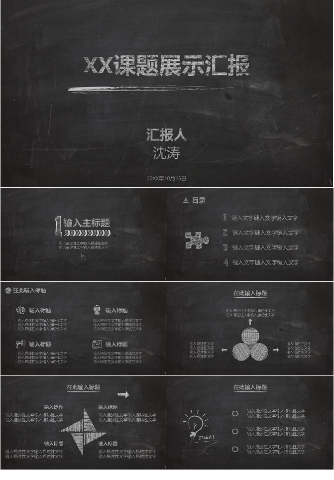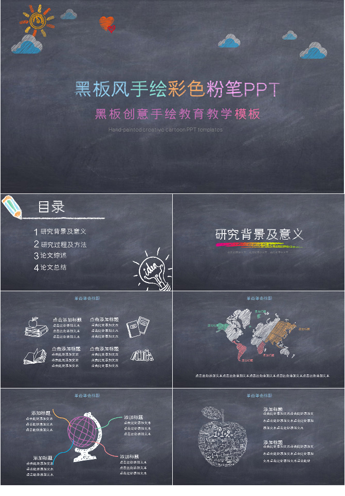 创意黑板彩色粉笔PPT模板