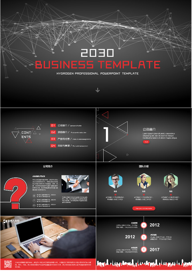 黑红点线大气商务PPT模板