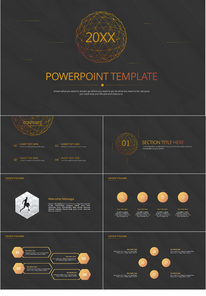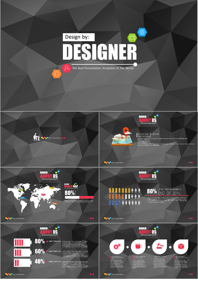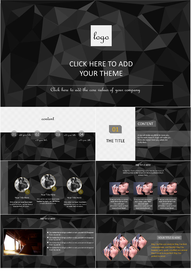 黑色低多边形背景通用PPT模板