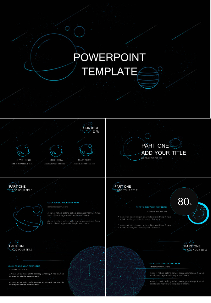 星光几何球面科技感PPT模板