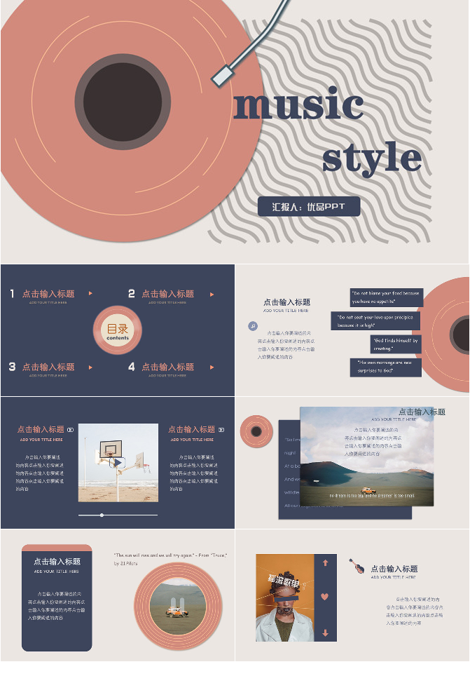 复古文艺范音乐唱片PPT模板