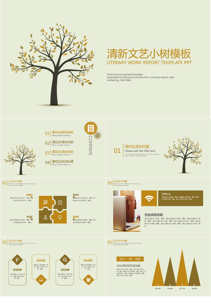 清新淡雅文艺小树PPT模板