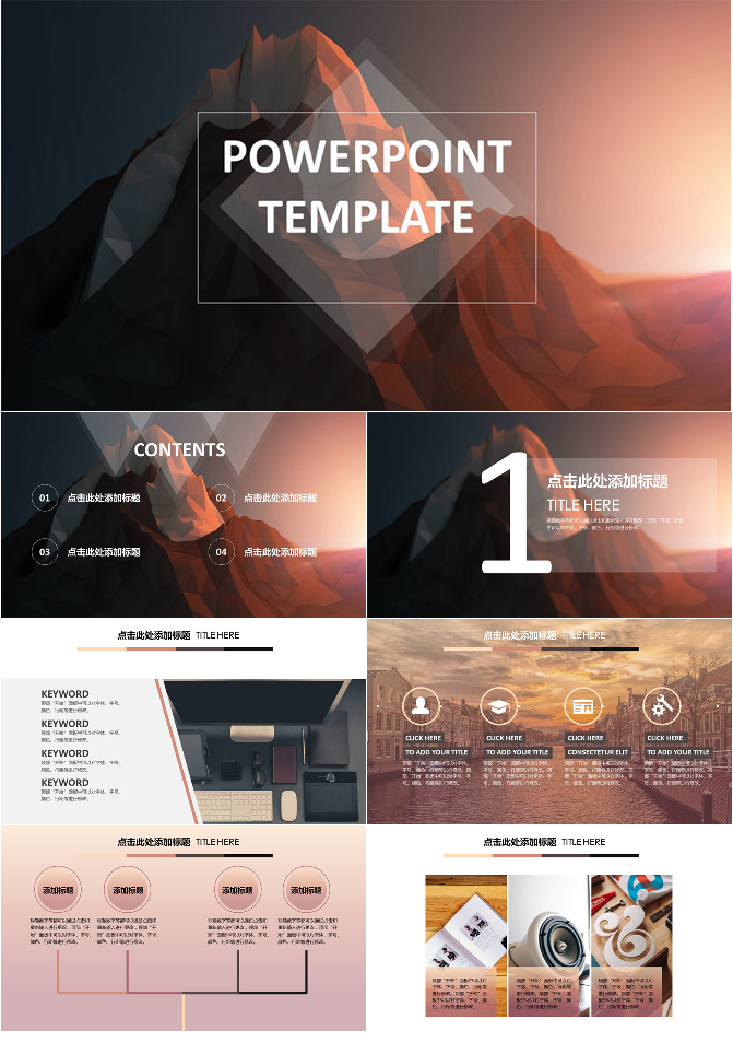 创意低面艺术山峰通用PPT模板