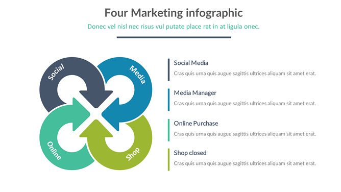 四项彩色聚合关系PPT图表