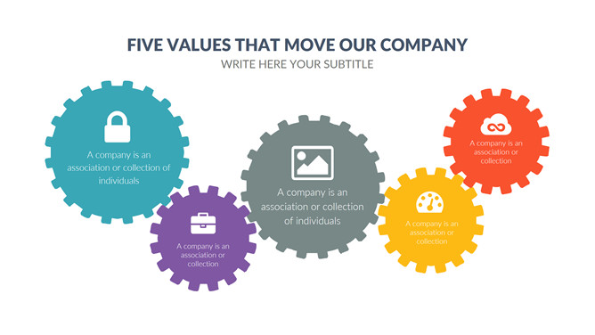 五项齿轮联动PPT图形