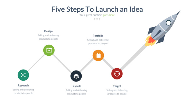 五步步骤火箭起飞PPT图形